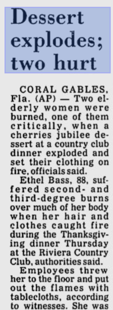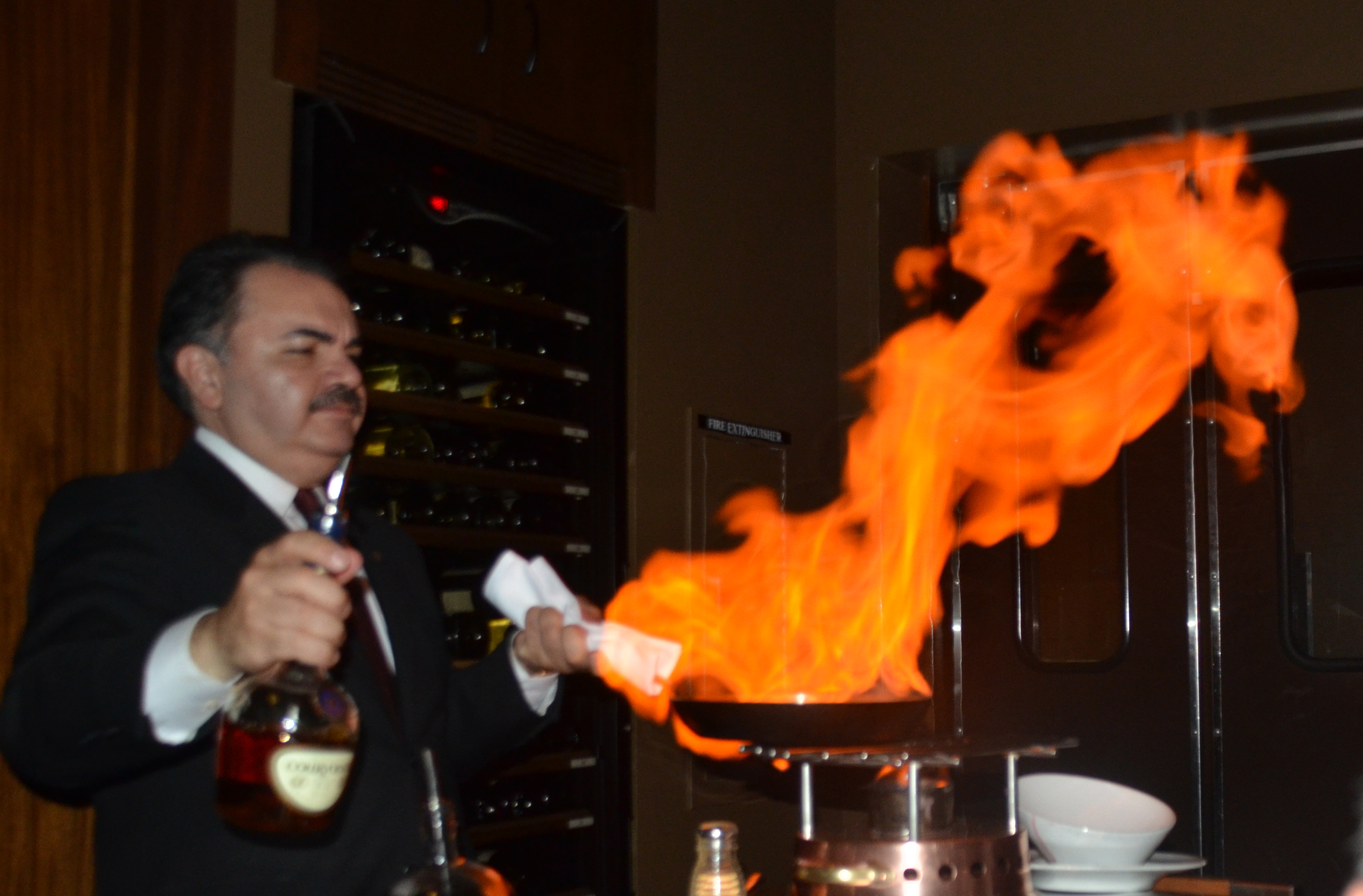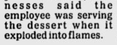 For desert one of the options was cherries jubilee, a flaming desert with sherry, vanilla ice cream and cherries. The flaming part is where the trauma occurred.