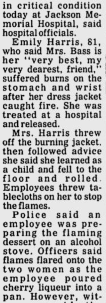 They poured the concoction in to her bowl and it overflowed onto her dress (made of polyester). At the time, ladies hair included significant flammable product which contributed to the events that unfolded right before me.
