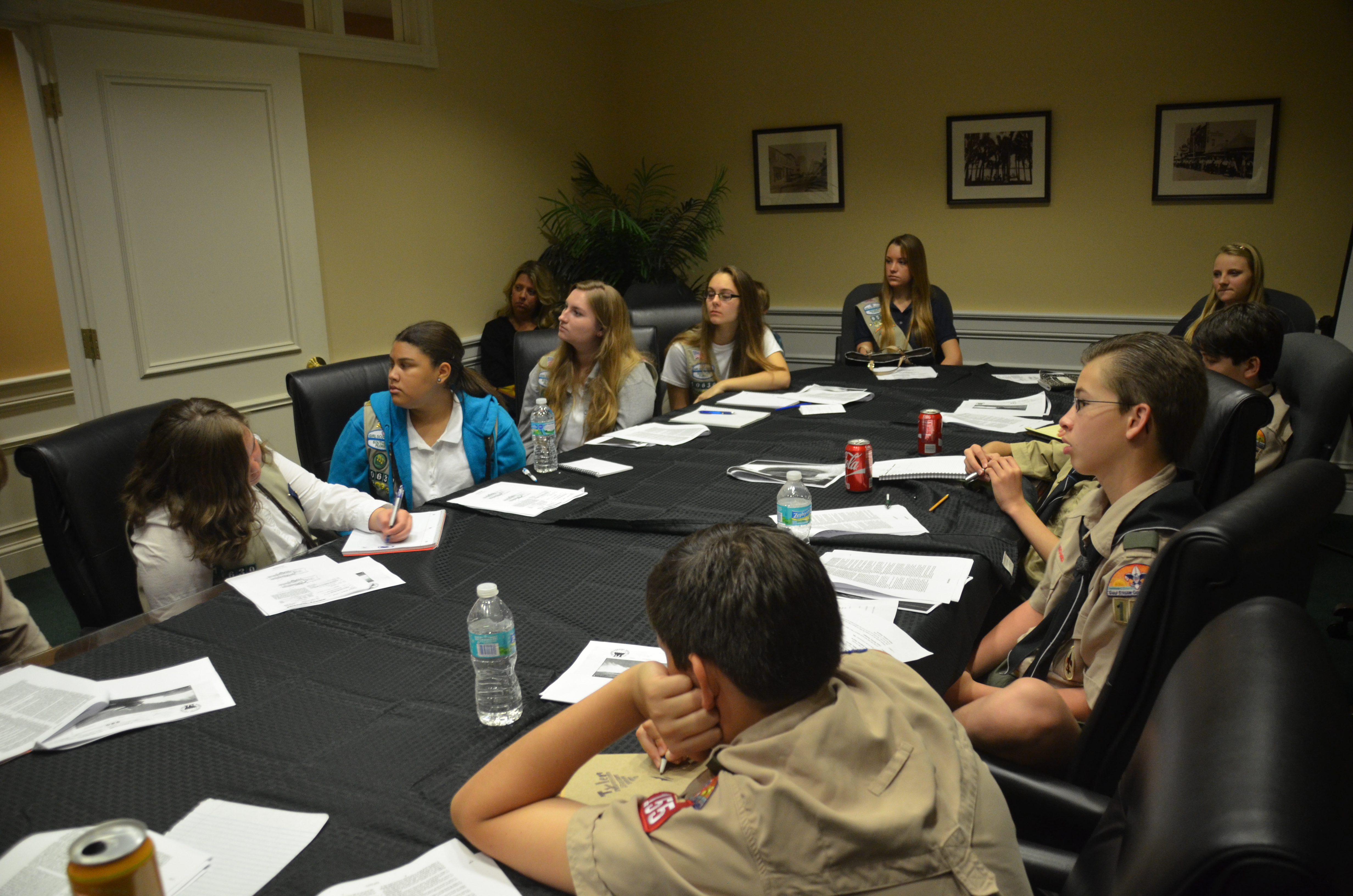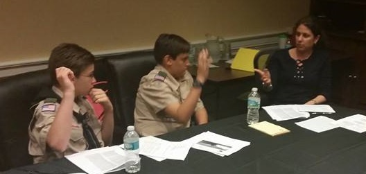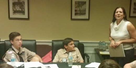 The day was concluded by the Scouts participating in a mock trial with Sherri Collins assisting the prosecuting team, Denise Bleau and Dane Leitner coaching the defense team and Eddie Stephens presiding as Judge. The Scouts did a great job as attorneys, witnesses and jurors. The final verdict = NOT GUILTY.