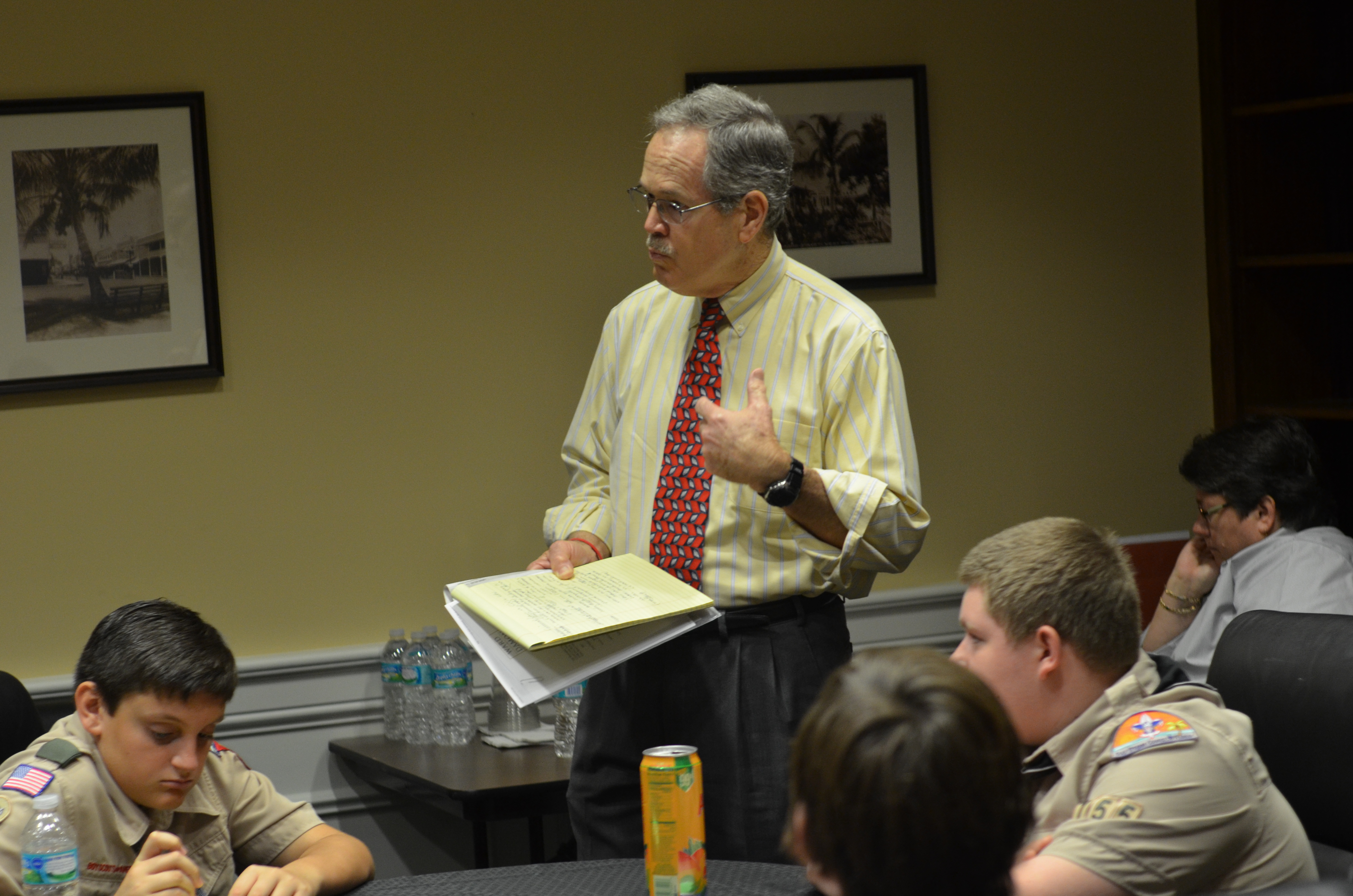 Judge Phillips discussed the importance of law and the difference between criminal and civil issues and quizzed the Scouts whether headlines from the newspapers presented a civil law or criminal law issue.