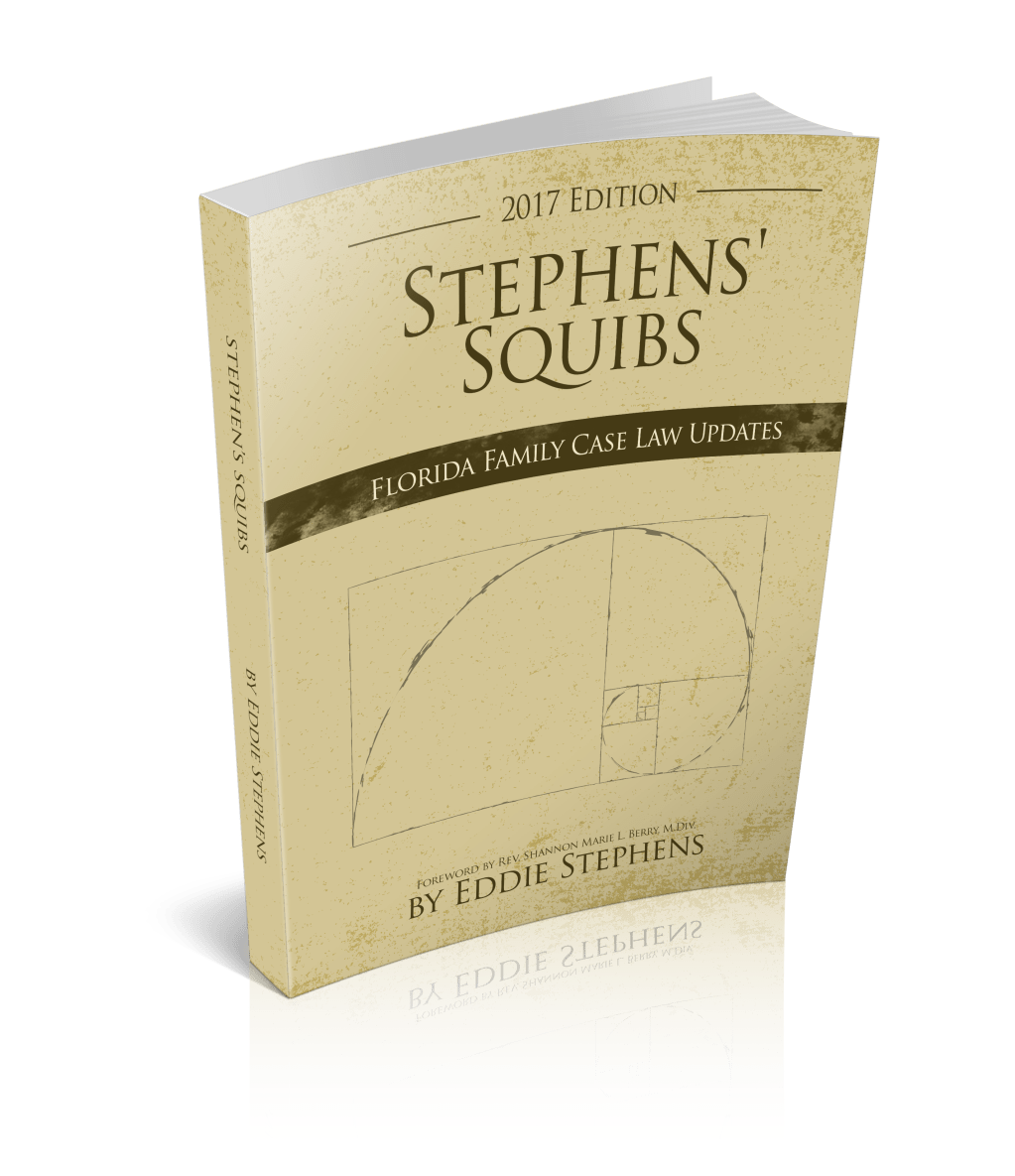 Once a year I collect all of my “squibs” (brief case law summaries focusing on Florida family law) and make the material available in a book format. I am honored and proud to present the 2017 Edition of Stephens’ Squibs Florida Family Case Law Updates. Something that started as a personal learning tool unexpectedly morphed into a respected and requested resource by colleagues which is why I always offer the material for free on this website.