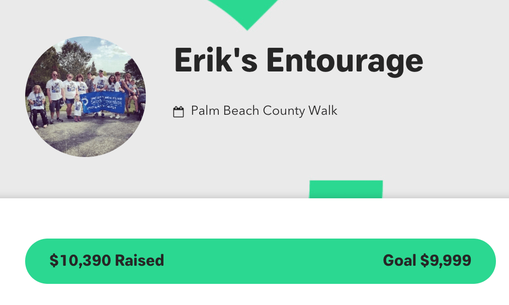 I invite my beautiful village that has been so loving and supportive of me as I move through this grief journey to WALK WITH ME. Join Erik’s Entourage. It would fill my heart to have some of my village walking with me this year. My village includes: My Fellow Loss Survivors, My Elk’s Family, My Work Family, My Jupiter Family, My Broward Family and Broward Friends with whom my children grew up. JOIN US.