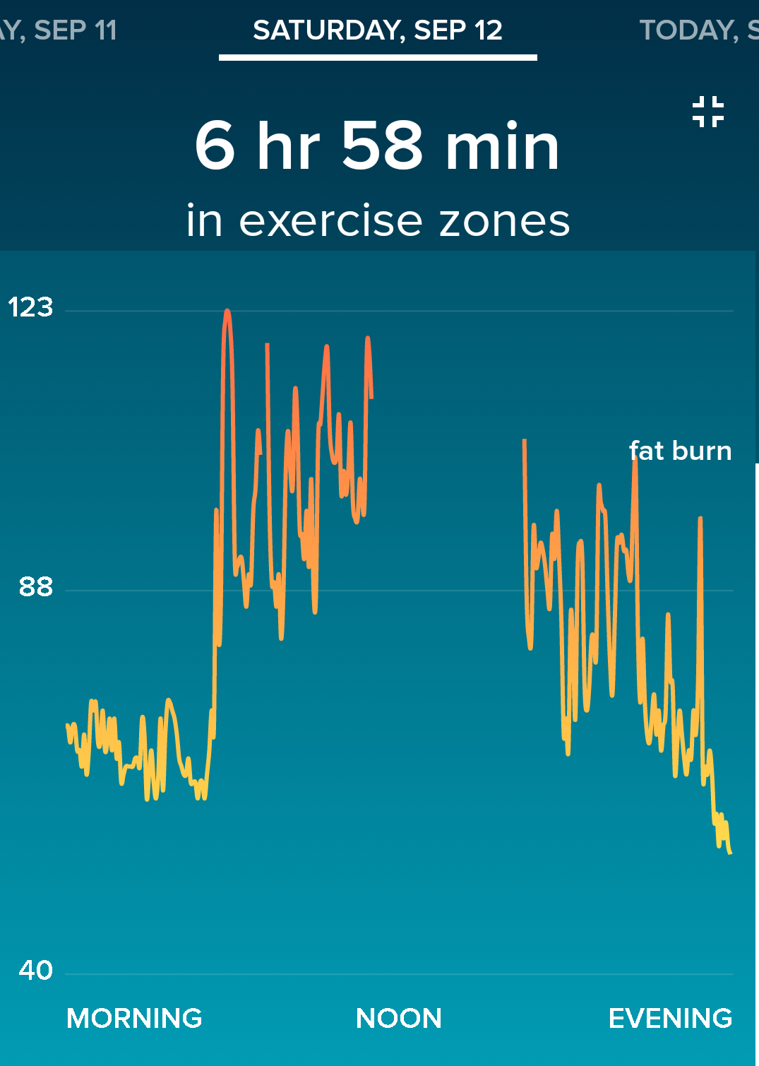 Fitbit Heartrate Data from day I broke arm, Gap in data is when I was at hospital.