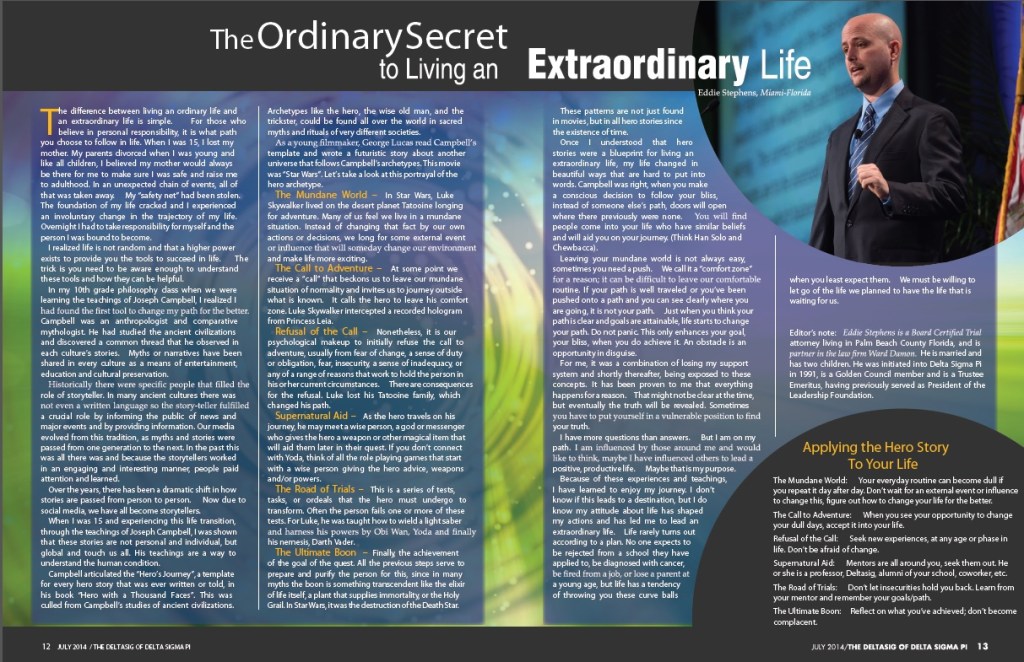 Eddie Stephens is a Board Certified Trial attorney living in Palm Beach County, and is partner in the law firm Ward, Damon, Posner, Pheterson & Bleau. He is married and has two children. He was initiated into Delta Sigma Pi in 1991 and has previously served as President of the Leadership Foundation. He is also involved in a number of charitable endeavors and most recently embarked on a campaign to raise money for the Big Dog Ranch Rescue, Palm Beach County’s largest no-kill dog rescue and has been an adult leader in the Boy Scouts of America for 8 years.