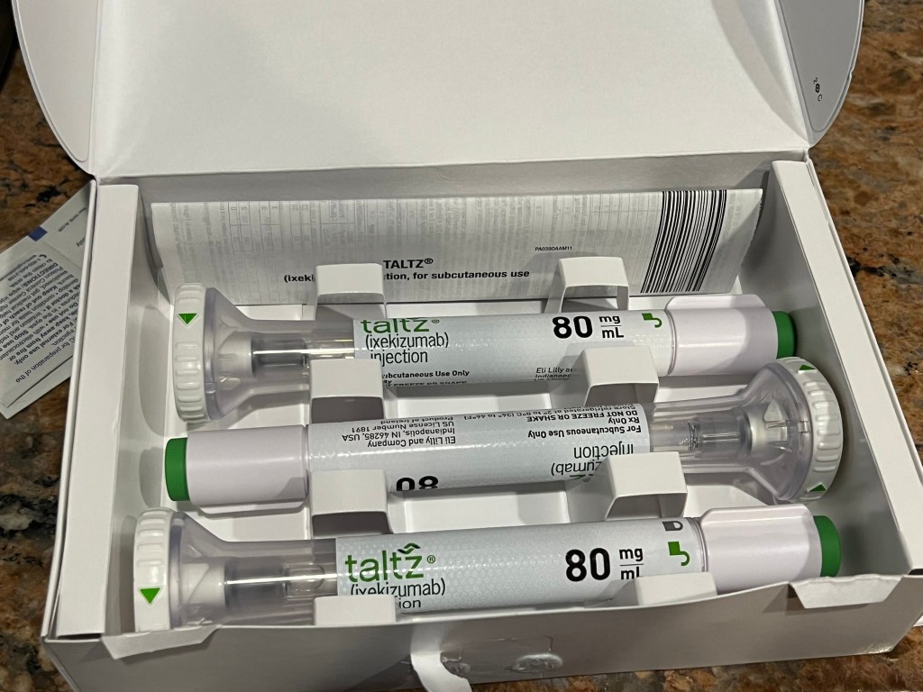 Not having any clue what I had or was getting into I visited my regular doc, and my new rheumatologist for 2nd opinions and thoughts on Taltz®. Everyone agreed it was a great drug for my condition and should fix all issues (including skin) in 6 – 10 weeks.